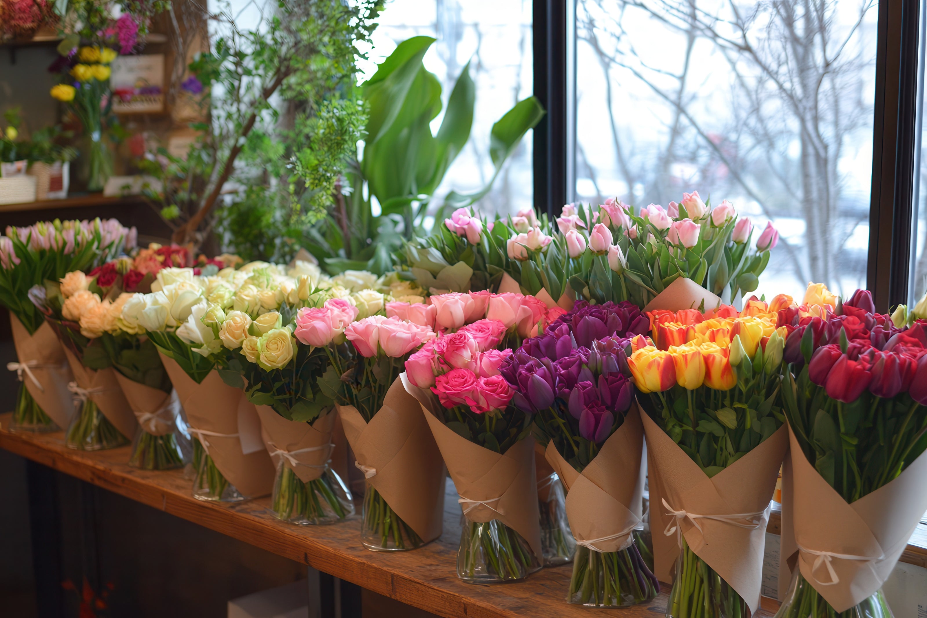 Our specialty tulip bouquets highlight vibrant colours and exquisite shapes to brighten any occasion.